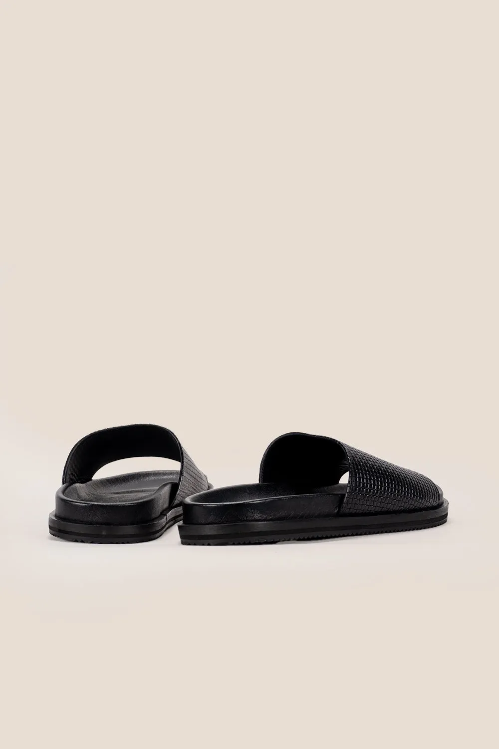 Introducing Tito Black, the woven slide leather sandal for men by Oswin Hyde. Designed for the discerning gentleman, this luxurious sandal exudes sophistication and elegance with its intricate woven design and premium leather material. Perfect for a day out or a night on the town, elevate your style with Tito Black.
